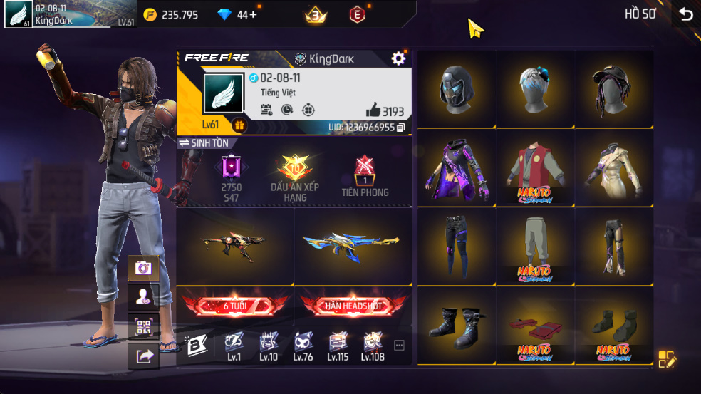 Xem thêm Acc Acc Free Fire Tự Chọn khác