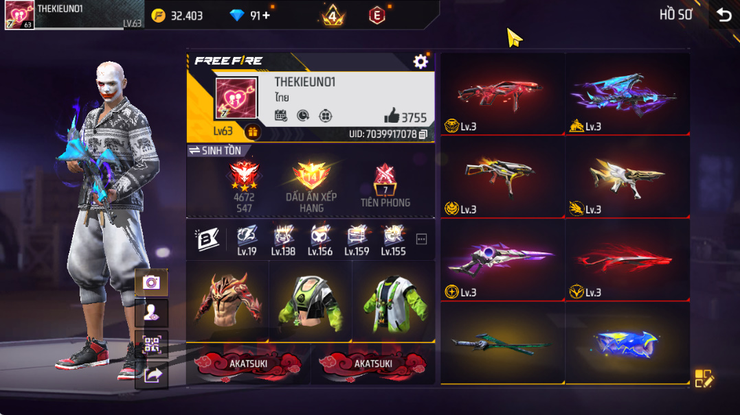 Xem thêm Acc Acc Free Fire Tự Chọn khác