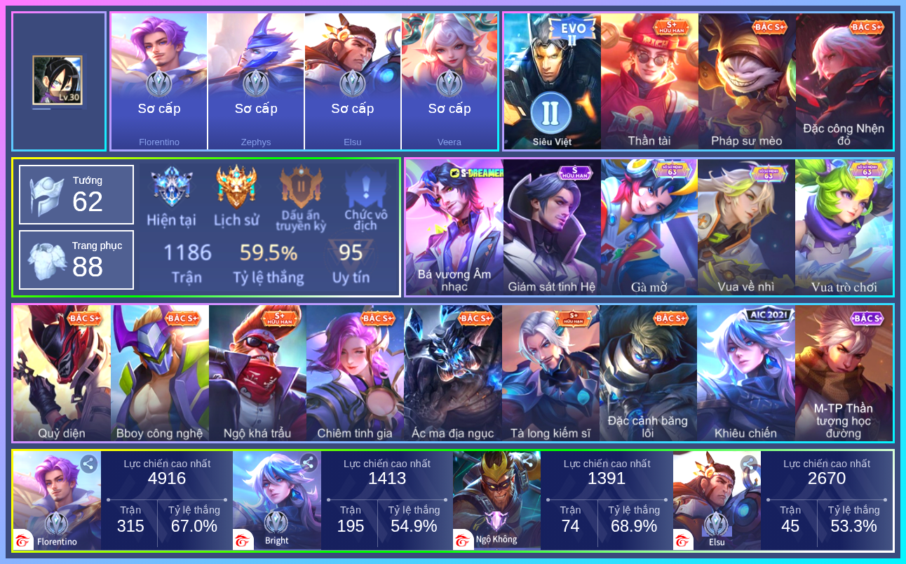 ⭐ Acc giống như hình, rank có thể là rank mùa cũ ⭐