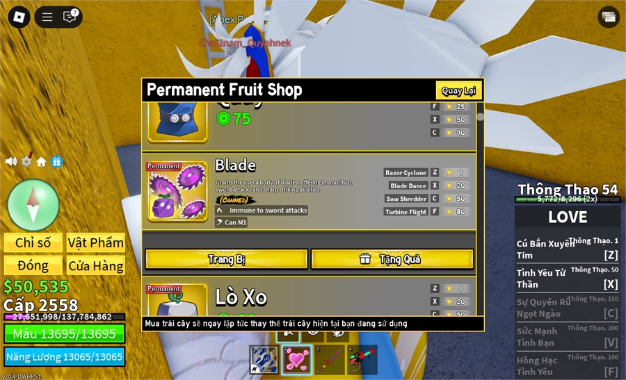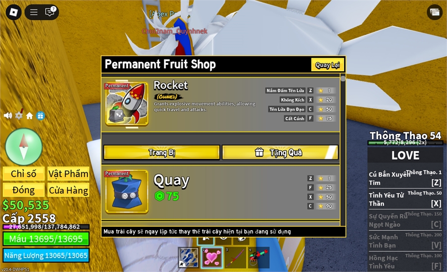 Trái Ác Quỷtrái blade vv,trái rocket vv