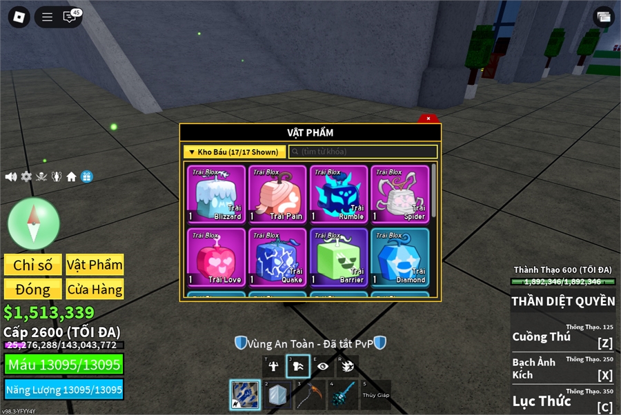 Trái Ác QuỷCó trong vật phẩm,Trái Quake