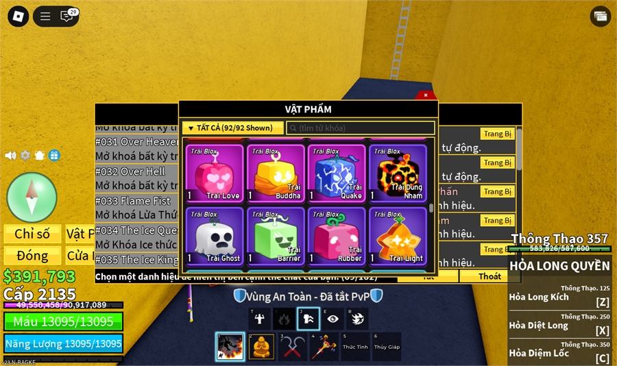 Trái Ác QuỷCó trong vật phẩm,Trái Mammoth,Trái Venom,Trái Sound,Trái Love,Trái Quake,trái spirder