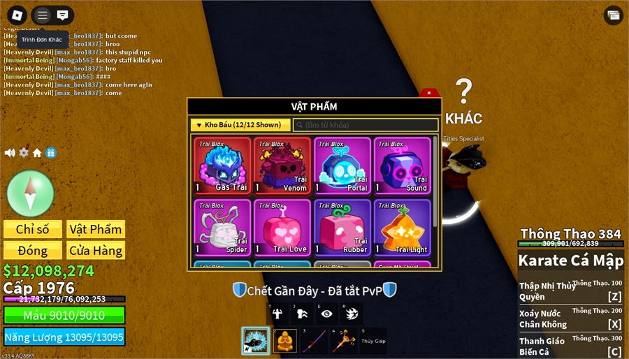 Trái Ác QuỷCó trong vật phẩm,Trái Venom,Trái Gas,Trái Sound,Trái Portal,Trái Love,trái spirder