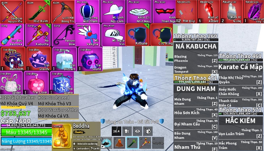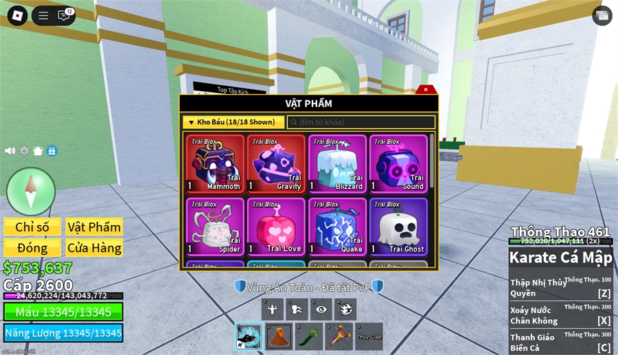 Trái Ác QuỷCó trong vật phẩm,Trái ác quỷ vĩnh viễn,Trái Mammoth,Trái Sound,Trái Gravity,Trái Love,Trái Quake,trái spirder
