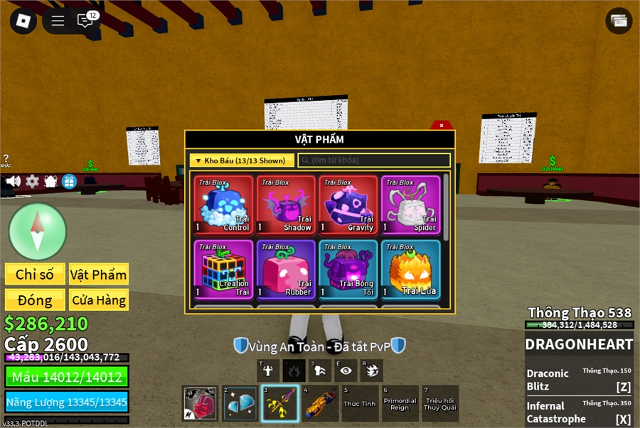 Trái Ác QuỷCó trong vật phẩm,Trái Control,Trái Gravity,Trái T-Rex