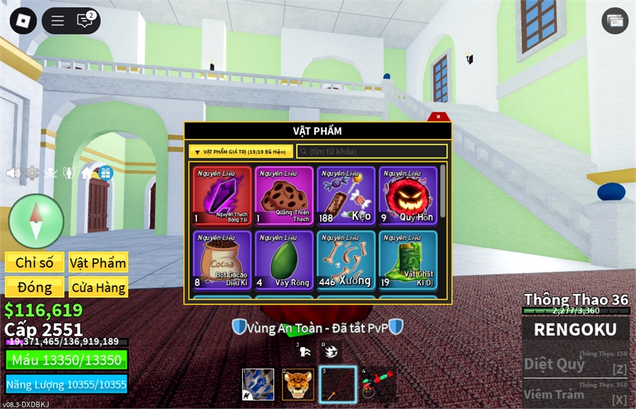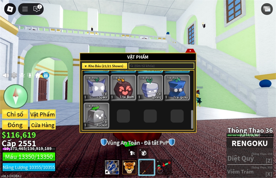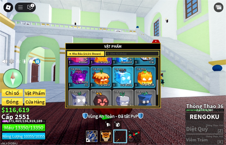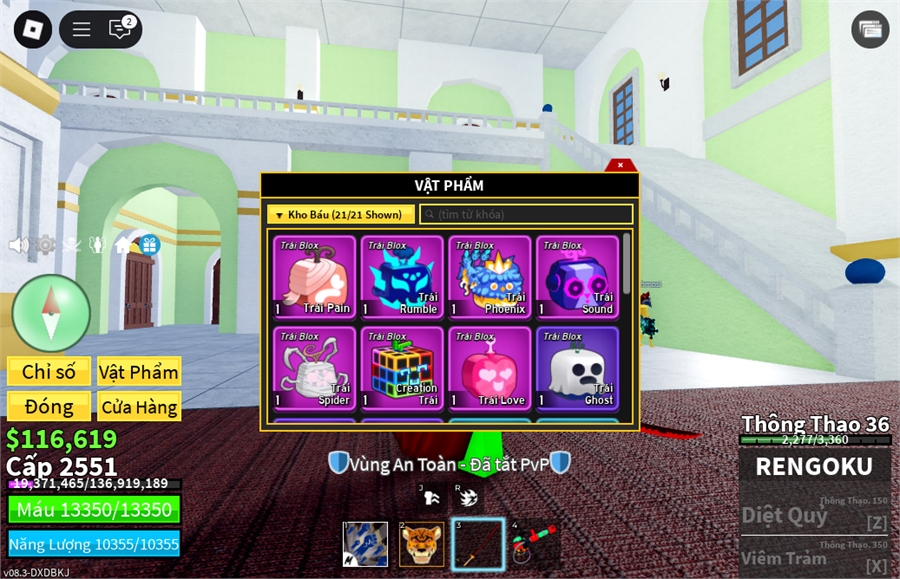 Trái Ác QuỷCó trong vật phẩm,Trái Love,trái spirder,trái rumble,trái phoenix,trái creation Tường