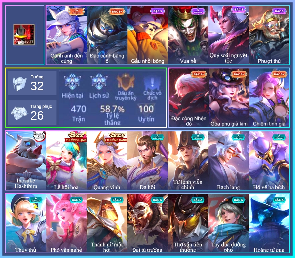 ⭐ Acc giống như hình, rank có thể là rank mùa cũ ⭐