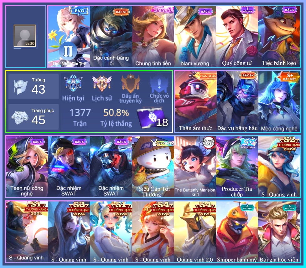 ⭐ Acc giống như hình, rank có thể là rank mùa cũ ⭐
